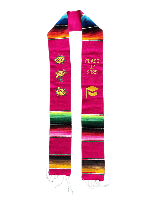 • "Class of 2025" Fuchsia with Yellow Roses Sarape Graduation Stole