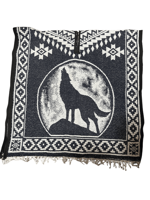 $35.00| /Navy Blue and White "Wolf Howling at The Moon" Poncho/Gaban
