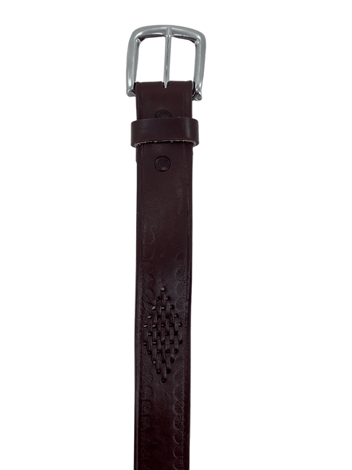 $40.00| /Brown and White Silk Thread Circled Diamond 1 3/4" Western Leather Belt