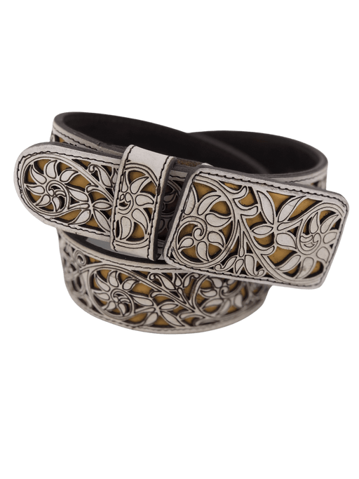 $49.99| /Brown and Silver "El Centenario" Chiseled Charro Leather Belt