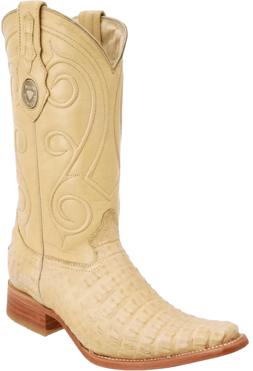 White Traditional Roper Round Toe Crocodile/Caiman Leather Boot FREE Shipping and Returns 100% Guaranteed. NO REFUNDS Only Credit Back Premium Cro...