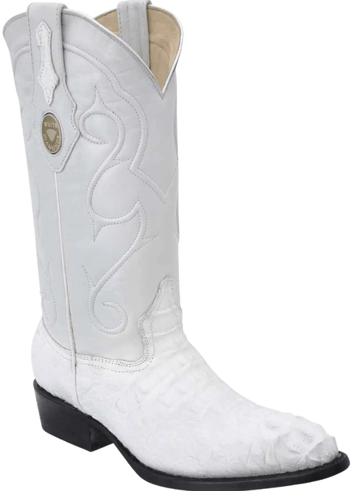 White Traditional Roper Round Toe Crocodile/Caiman Leather Boot