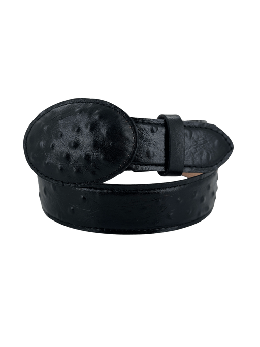Black Ostrich Print Leather Belt Black 1 1/2 Inch Wide Printed Exotic Leather Made in Mexico with Genuine Leather Recommend to Size Up With Belt C...