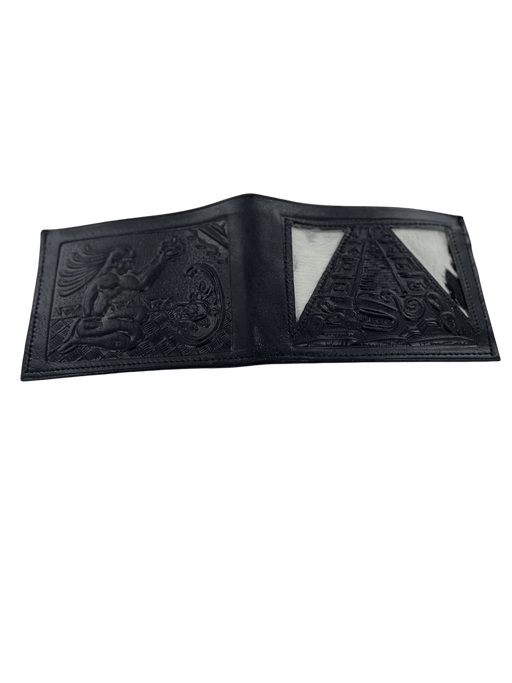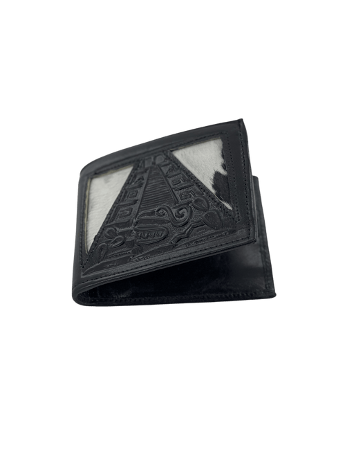 Black Pyramid with Cow Hair Leather Wallet Pyramid Design Wallet made of Genuine Leather Handcrafted in Mexico Length 3.5" x Width 4.5" Includes ...