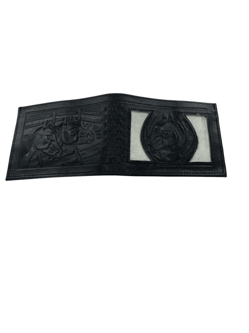 $23.99| /Black Horse Head in Horseshoe with Cow Hair Leather Wallet