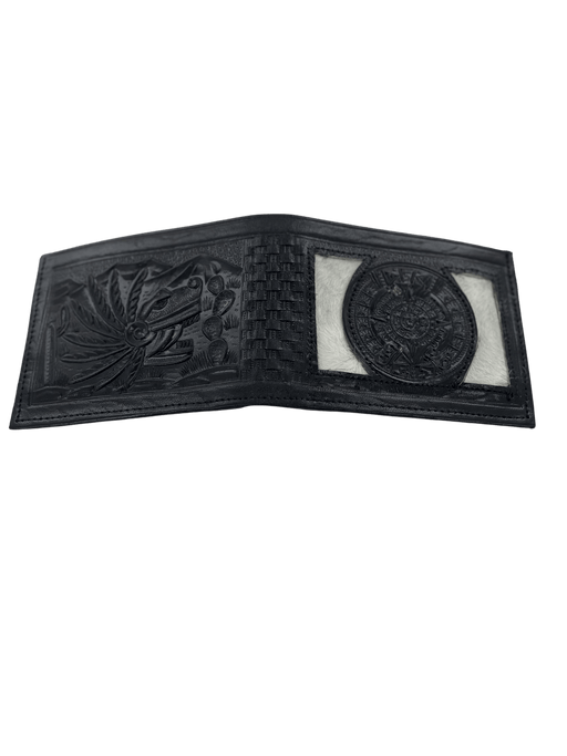 $23.99| /Black Aztec Calendar with Cow Hair Leather Wallet