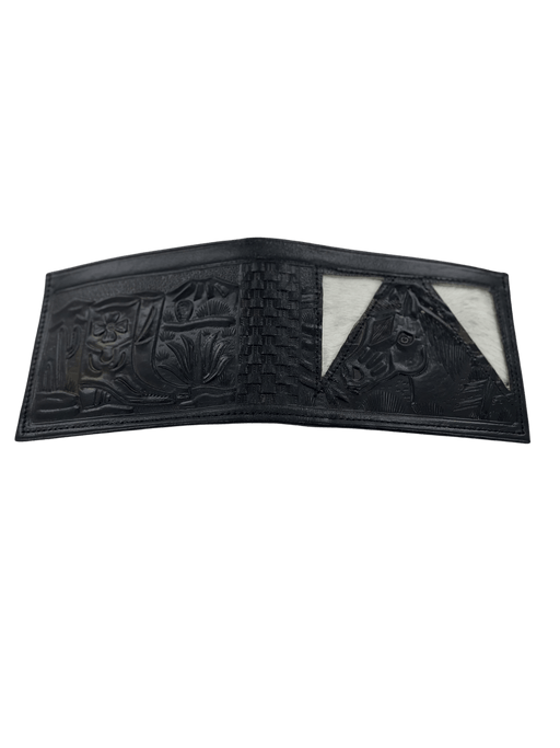 Black Horse Head in Horseshoe with Cow Hair Leather Wallet Horse Head in Horseshoe Design Wallet made of Genuine Leather Handcrafted in Mexico Le...
