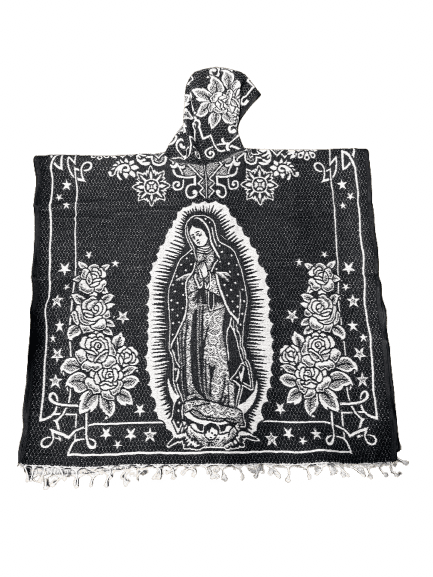 $35.00| /Black and White Virgen de Guadalupe Poncho/Gaban