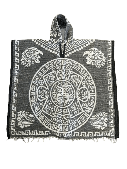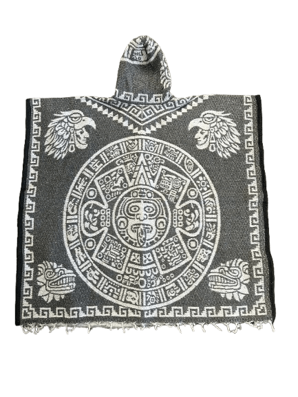 $29.99| /Youth Black and Cream Aztec Calendar Poncho/Gaban with Hoodie / Gorro