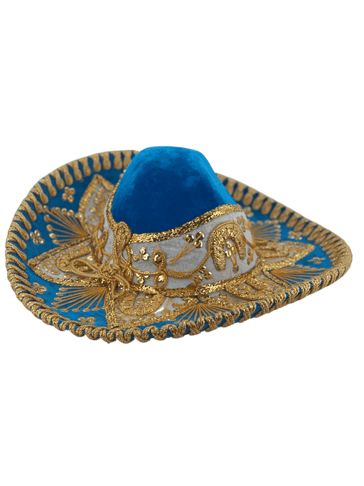 Kids Sombrero Charro Mariachi Blue and Gold KIDS SIZE Made in Mexico Made of Velvet Sombrero de Niño/Niña One size fits most kids All of our ...