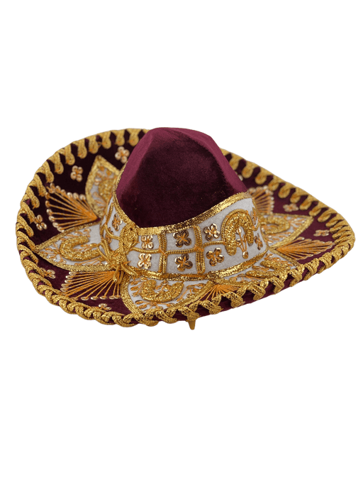 Kids Sombrero Charro Mariachi Burgundy and Gold KIDS SIZE Made in Mexico Made of Velvet Sombrero de Niño/Niña One size fits most kids All of o...
