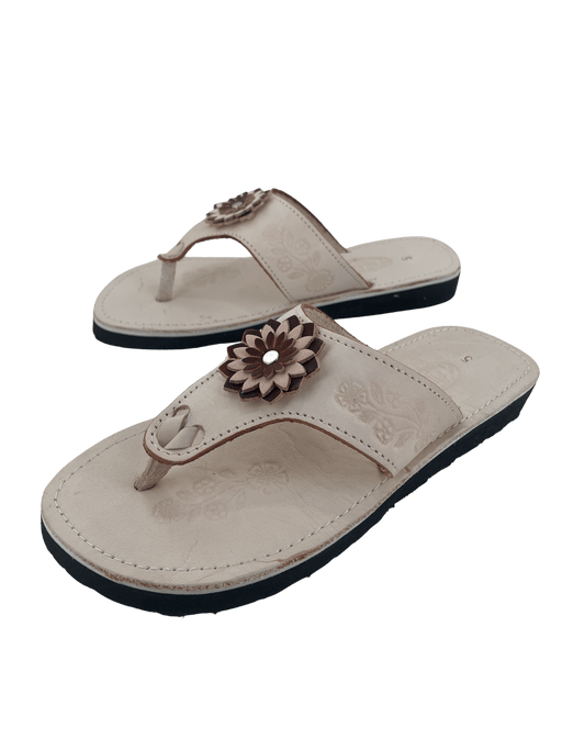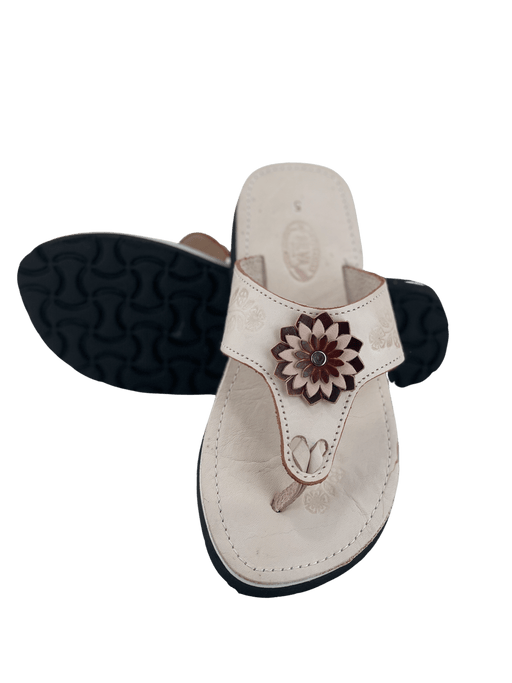 $35.00| /Leather Sandal - Natural Flower In Middle