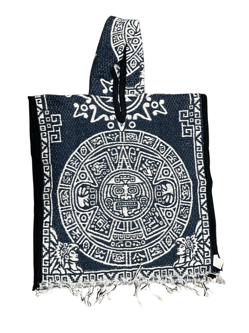 $29.99| /Youth Navy Blue and White Aztec Calendar Poncho/Gaban with Hoodie / Gorro