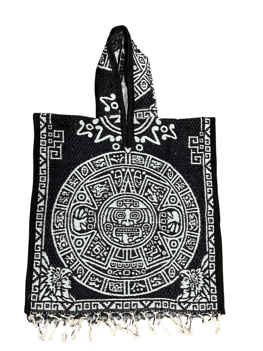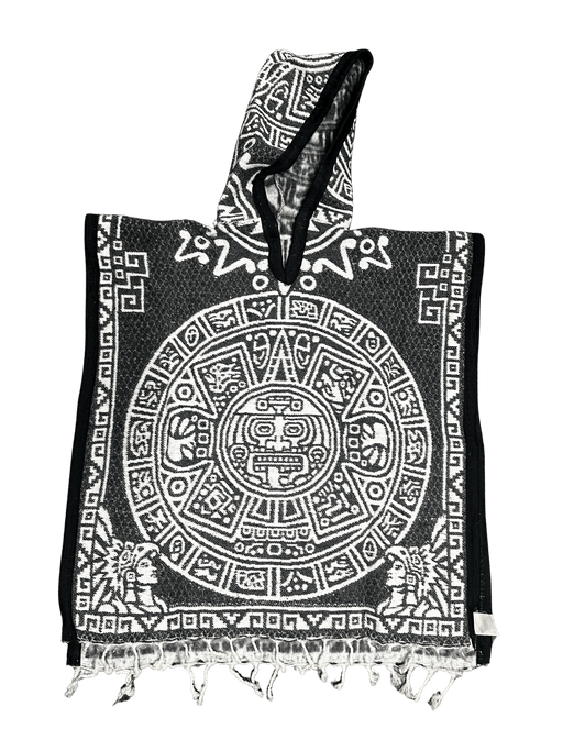 $29.99| /Youth Grey and White Aztec Calendar Poncho/Gaban with Hoodie / Gorro