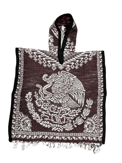 $29.99| /Youth Burgundy and White Mexico Eagle with Warrior Carrying Sleeping Woman Poncho/Gaban with Hoodie / Gorro