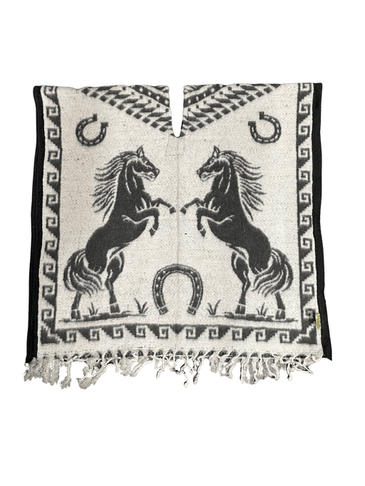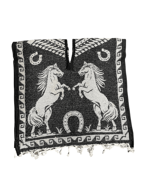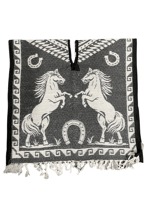 $27.99| /Black and White Aztec Calendar Youth Horse Poncho/Gaban