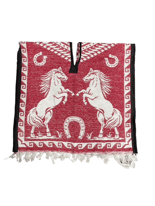 $29.99| /Youth Burgundy and White Horses Poncho/Gaban with Hoodie / Gorro