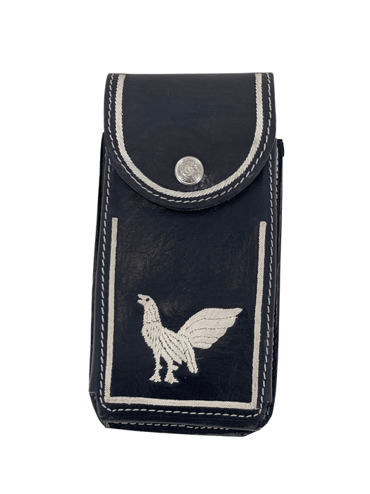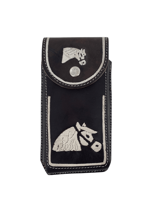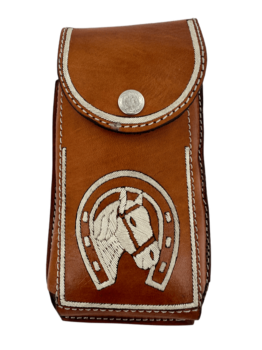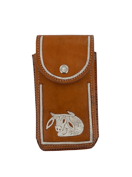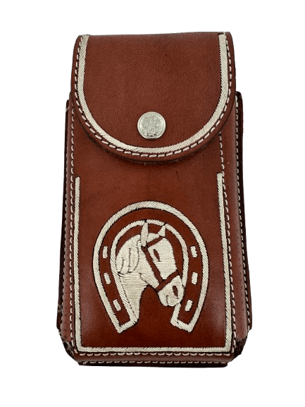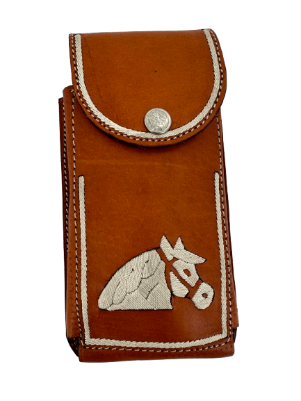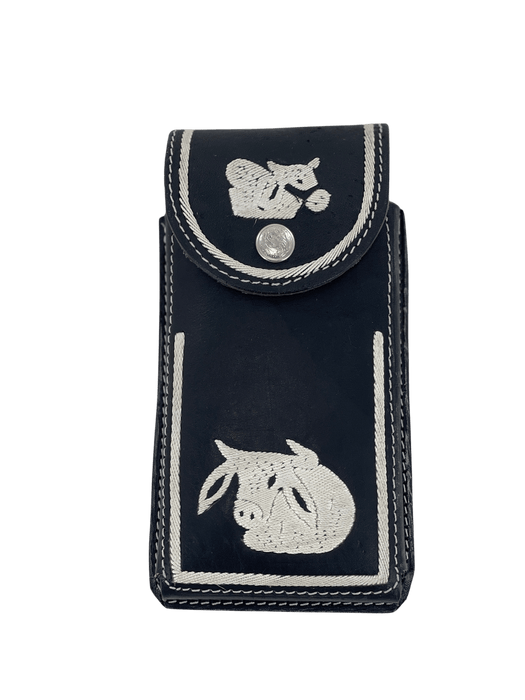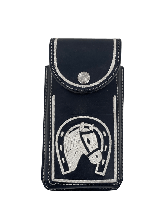 Funda para teléfono de cuero piteado con cabeza de caballo negra