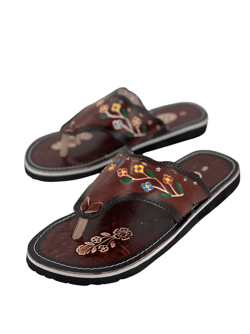 $35.00| /Sandalia Piel- Bordado Flores Marrón