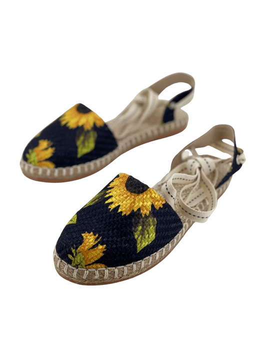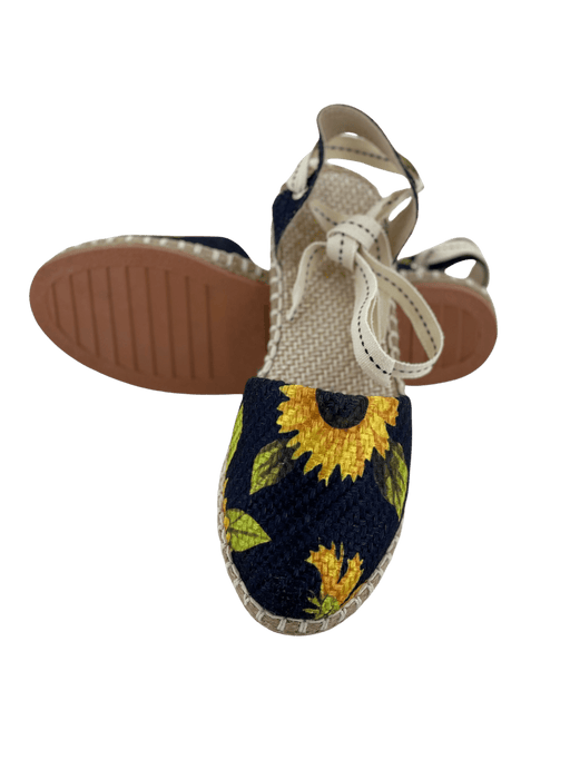 $42.00| /Huarache de tacón cruzado de tela azul marino con girasoles