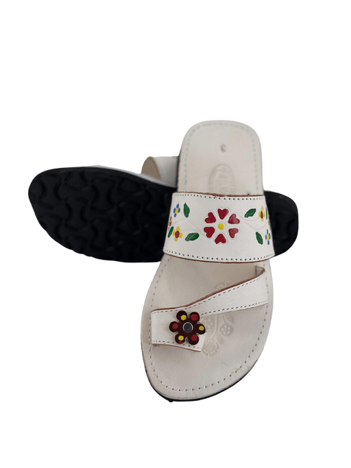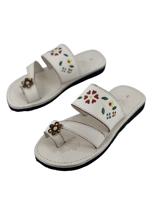 $35.00| /Sandalia de cuero - Anillo de dedo de flor de colores naturales
