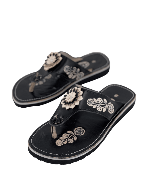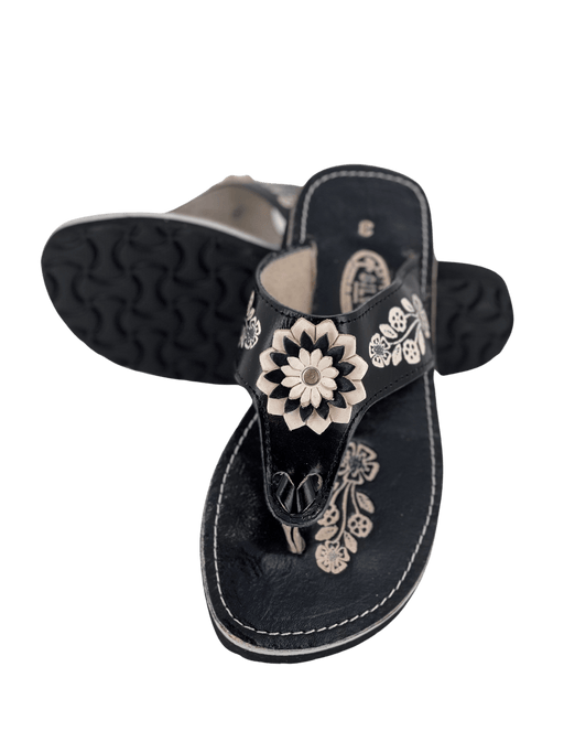 $35.00| /Sandalia de Piel - Flor Negra en el Medio