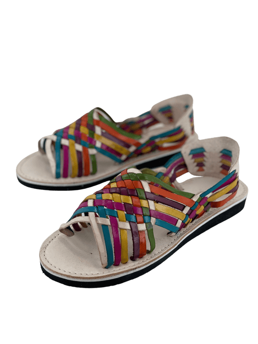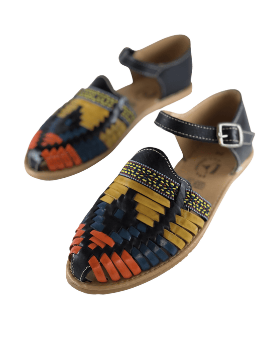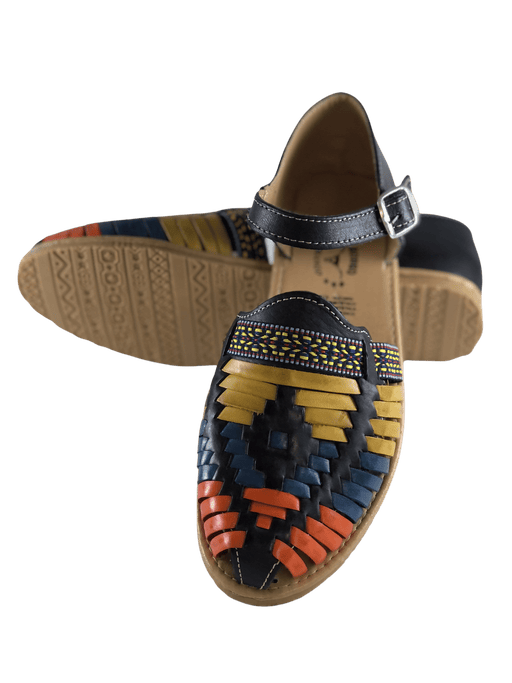 Precio original $39.99Precio actual $24.99| /Huarache Suela de Cuero Ojo de Diamante Negro y Natural