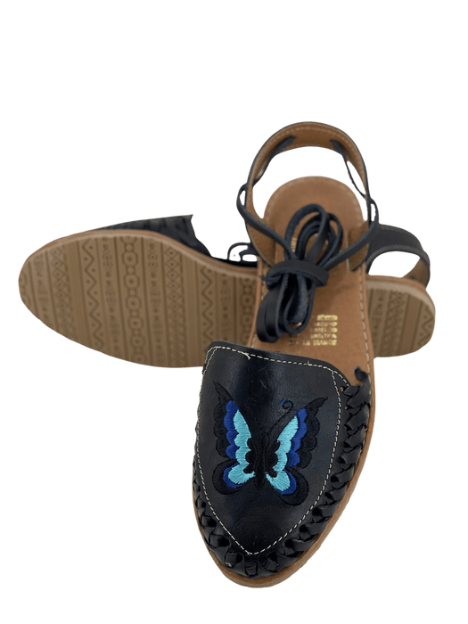 Huarache de tacón envolvente con mariposa negra