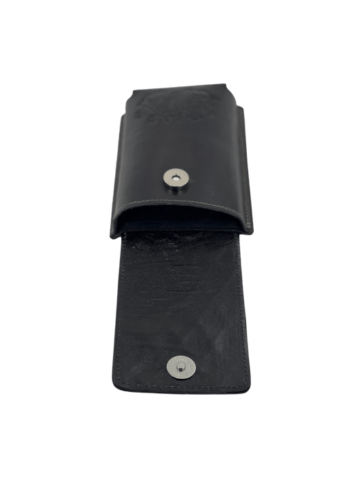 Funda para teléfono Charro de cuero con estampado de caballo negro y cactus