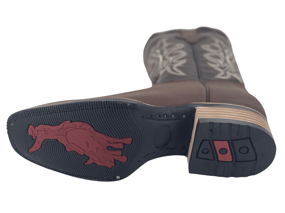 - Bota rodeo marrón con punta cuadrada