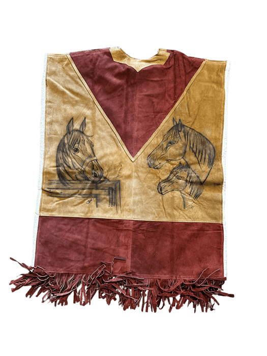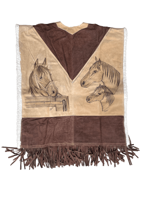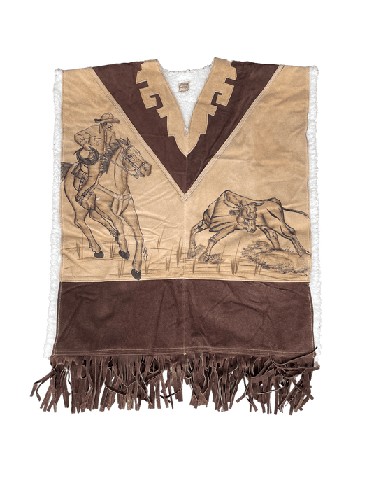 Caballo de montar vaquero con poncho de cuero de toro con pelo en el interior