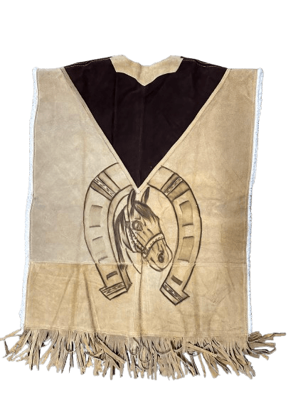 Horse Head inside Horseshoe Leather Poncho With Fur Inside