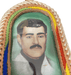 - Un retrato colorido y costuras de cuerda de nailon anudadas rodean a Malverde
