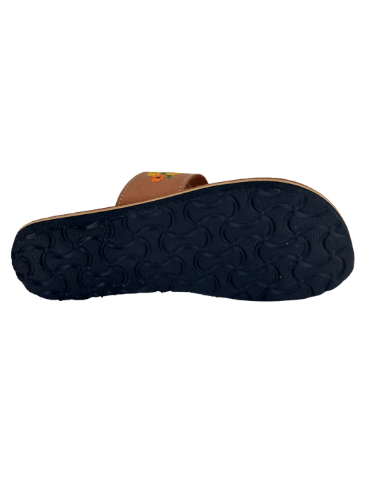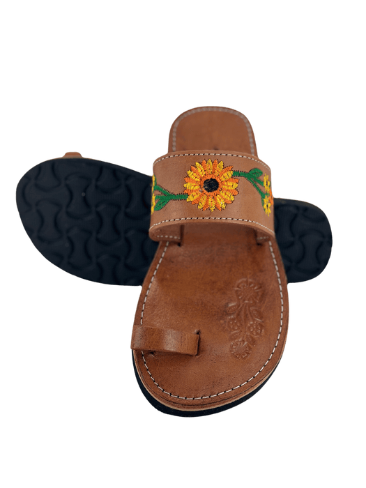 Sandalia de Piel - Nuez Tira Simple con Girasol