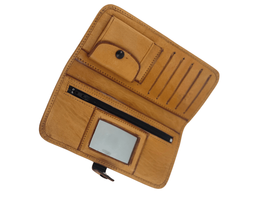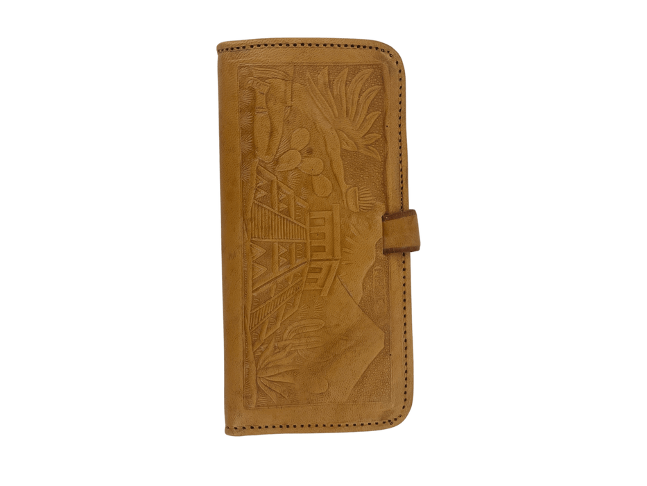 Cartera Telar Amarilla de Piel con Pirámide Estampada
