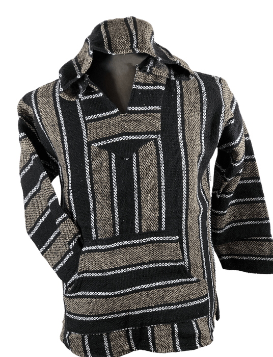 Baja Hoodie Black and Dark Brown with White Lines 041