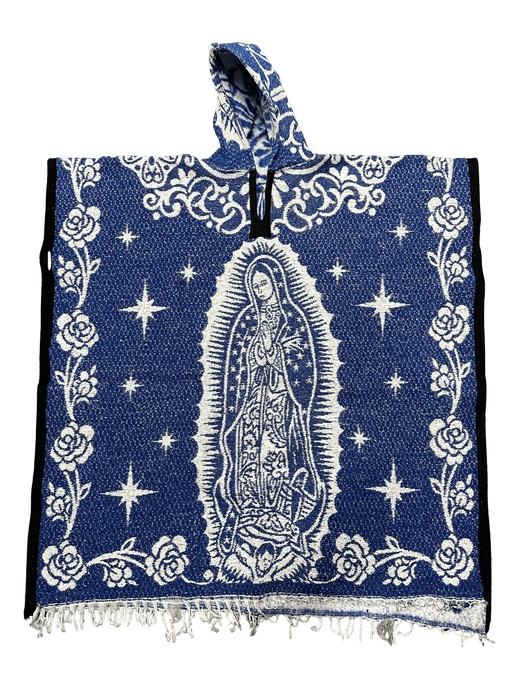 Blue and White Virgen de Guadalupe Poncho/Gaban with Hoodie / Gorro