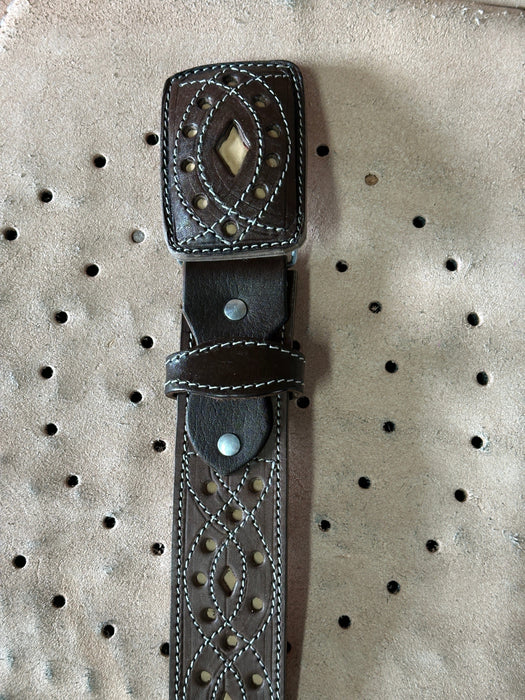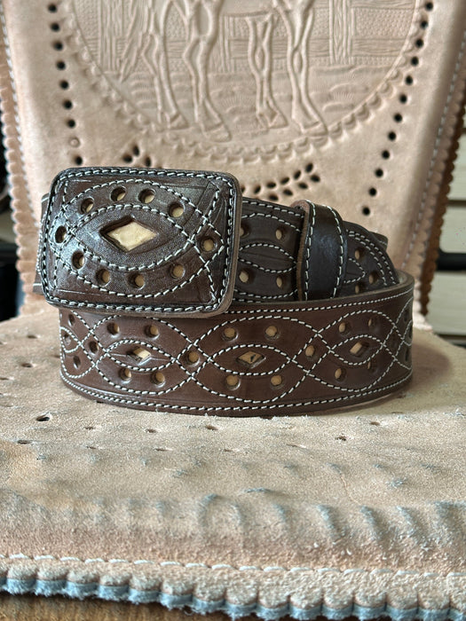 Brown and Light Brown Infinite Chiseled Charro Leather Belt