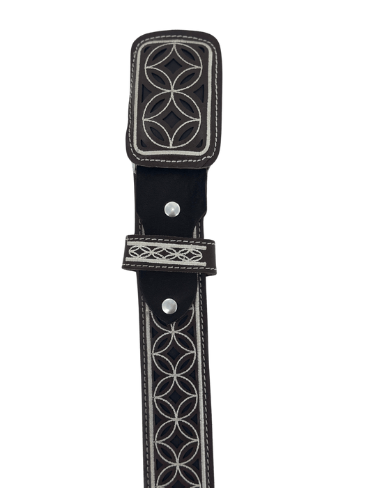 Brown and White Silk Thread Circled Diamond 1 3/4" Western Leather Belt