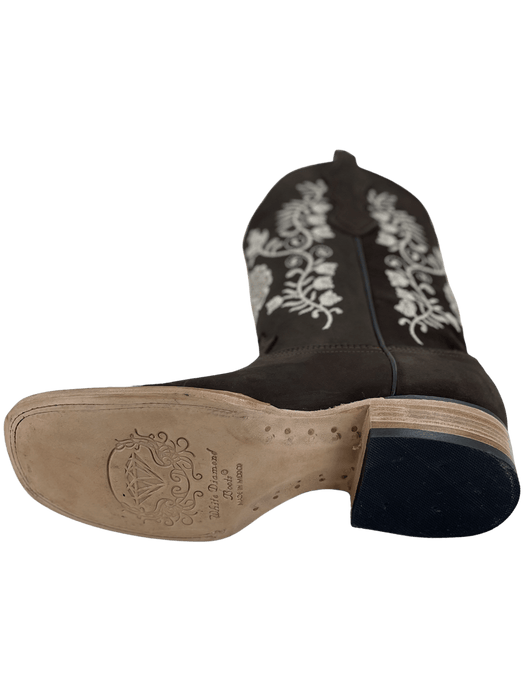 Women’s Brown Nobuck with Natural Flowers Square Toe Rodeo Boot