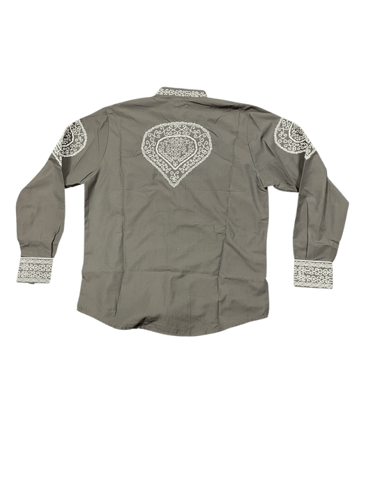 Brown with Beige Embroidered Intricate Design Charro Shirt