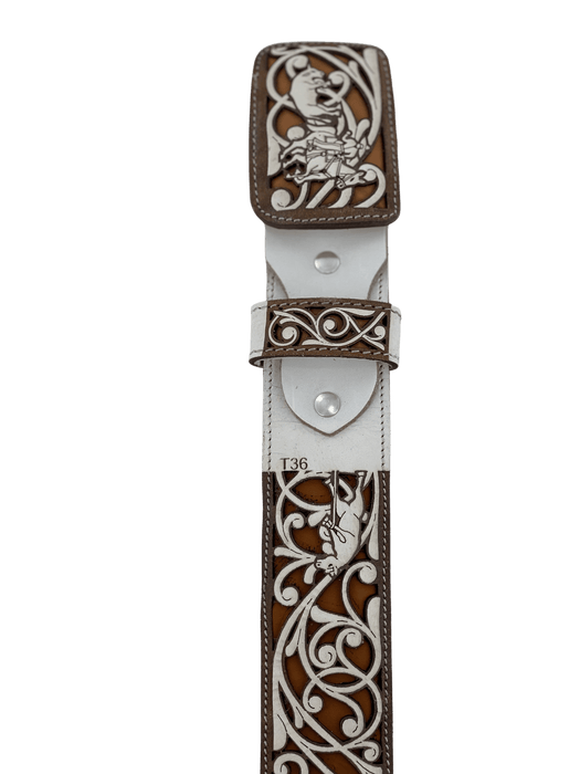 Suerte Charra Design Brown and Light Brown with White Chiseled Charro Leather Belt