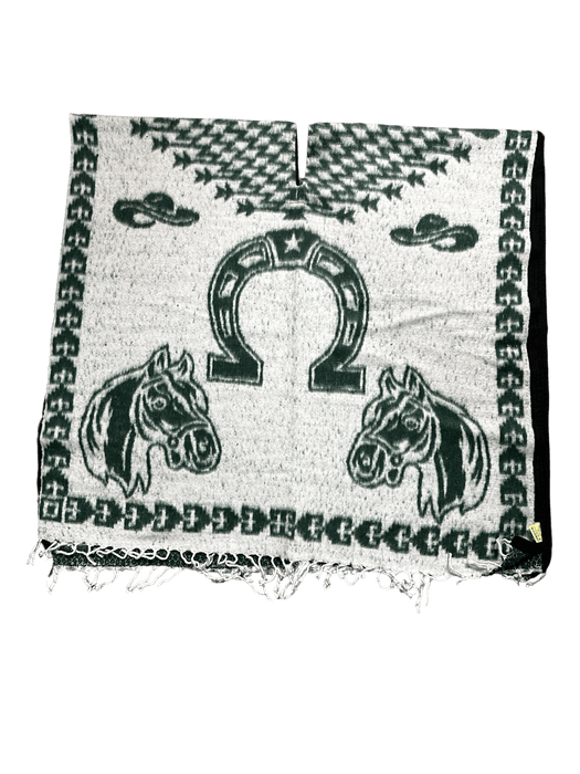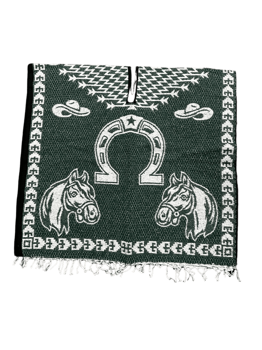 Green and White Horse Shoe with Horses Poncho / Gaban