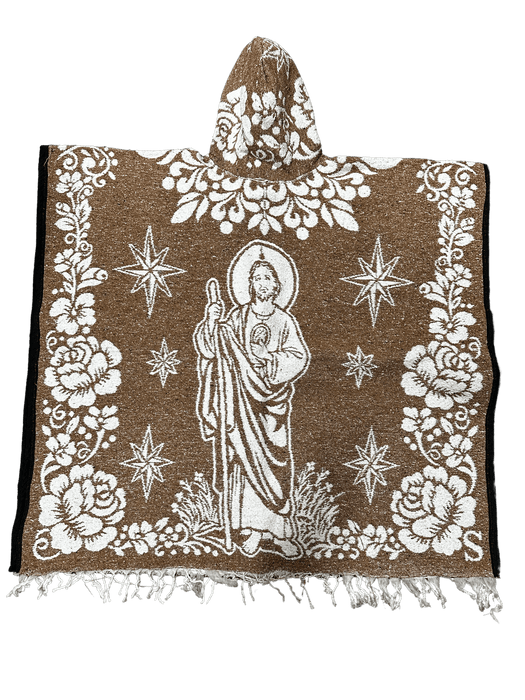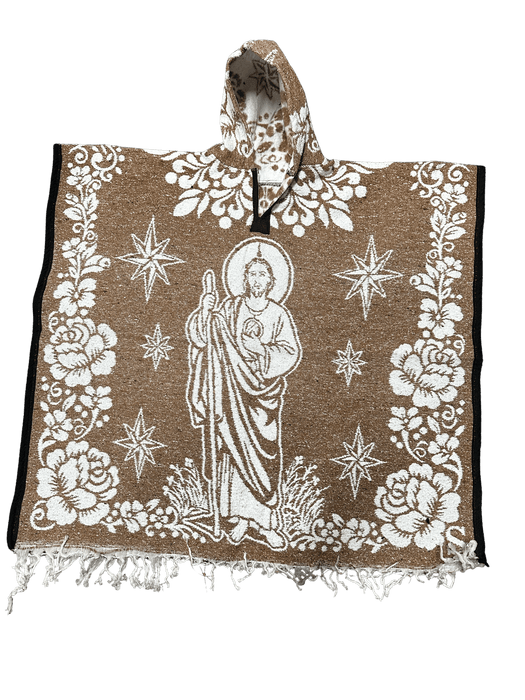 Light Brown and White San Judas Tadeo Poncho/Gaban with Hoodie / Gorro