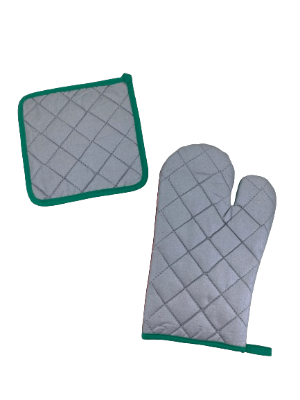 - 3pc Set Includes Apron, Pot holder, Oven mitt