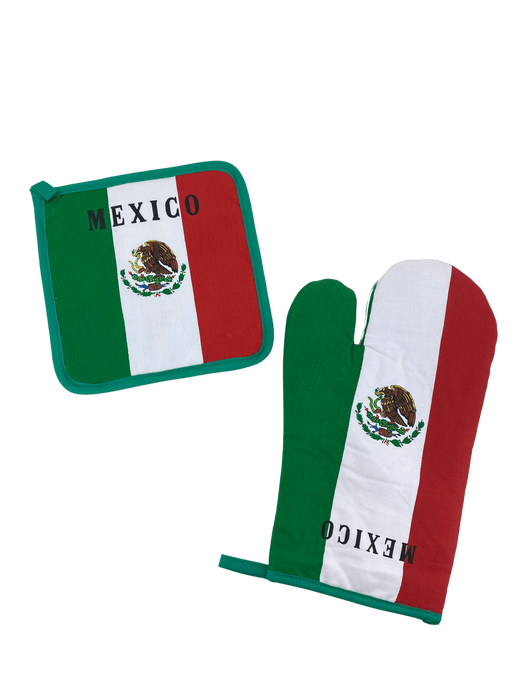 Celebrate your passion for Mexico as you cook with this complete BBQ and kitchen set. Adorned with the vibrant flag design, it comes with an apron, oven mitt, and potholder, perfect for any cooking task. Ideal for fans of Mexico or those who want to cook with national pride, this new set is a great addition to your kitchen.