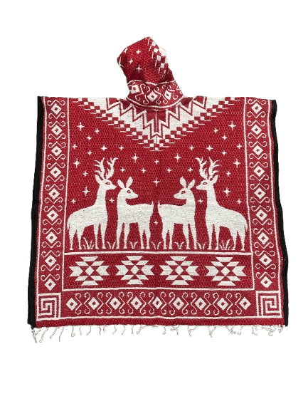 Red and White Deer Poncho/Gaban with Hoodie / Gorro
