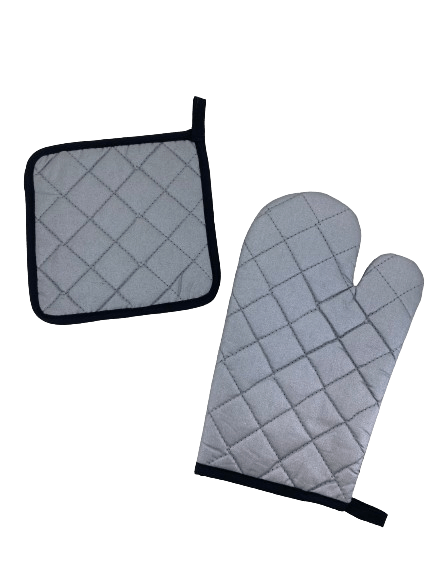 - 3pc Set Includes Apron, Pot holder, Oven mitt