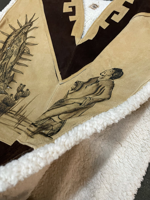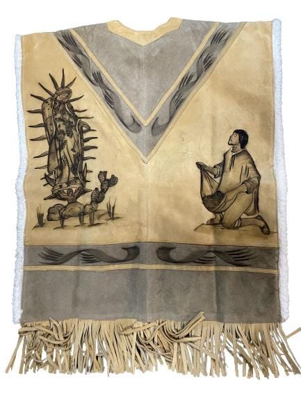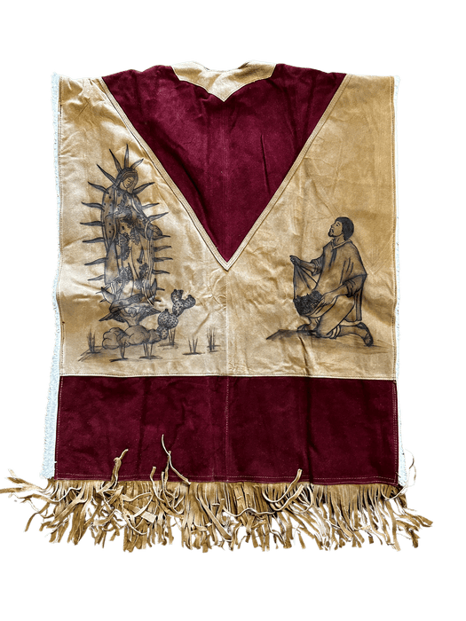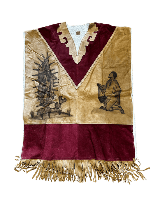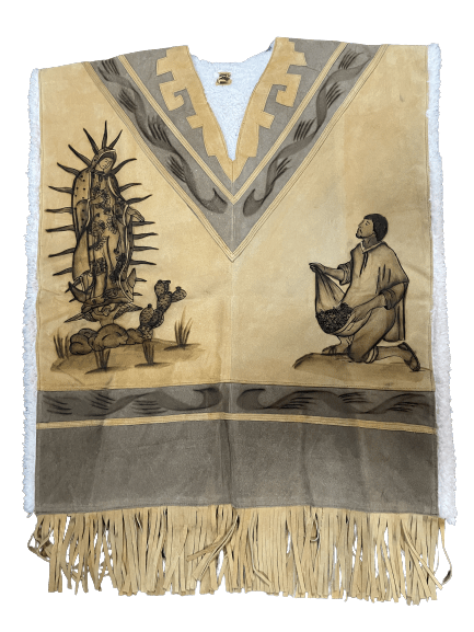 Virgen de Guadalupe Leather Poncho With Fur Inside