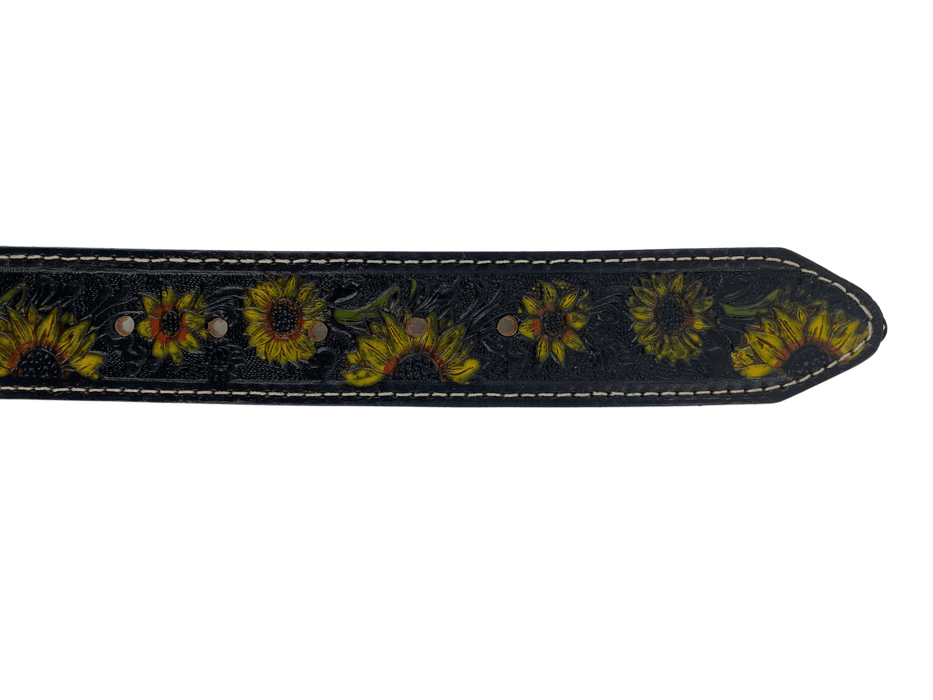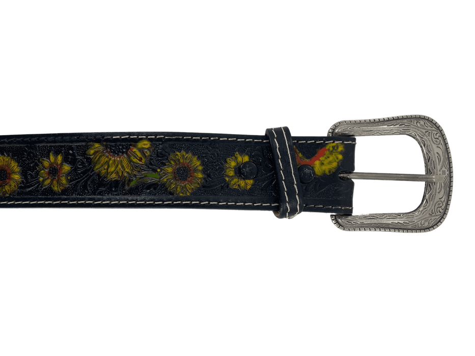 Women’s Black Hand-painted Sunflowers Leather Belt